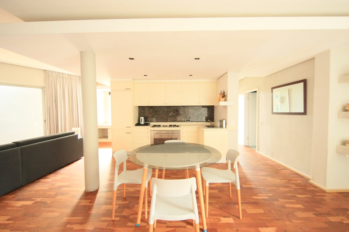 Obudź się przy śpiewie ptaków i szumie oceanu. Wielokrotnie nagradzany obiekt architektoniczny położony w cichej uliczce bez przejazdu u stóp Góry Stołowej. Ten przepiękny, mały apartament, położony przy rezerwacie przyrody Góry Stołowej i oferujący wspaniałe widoki na ocean, to prawdziwy rajski zakątek. W odległości 10 minut jazdy od centrum miasta i 5 minut jazdy / 25 minut spacerem od plaży – to idealna lokalizacja, aby odkrywać główne atrakcje Kapsztadu. Idealne miejsce dla miłośników przyrody, miłośników pieszych wędrówek i plażowiczów.