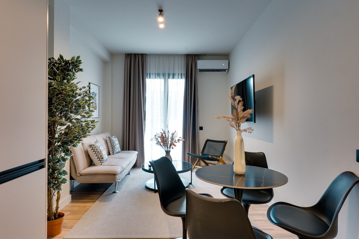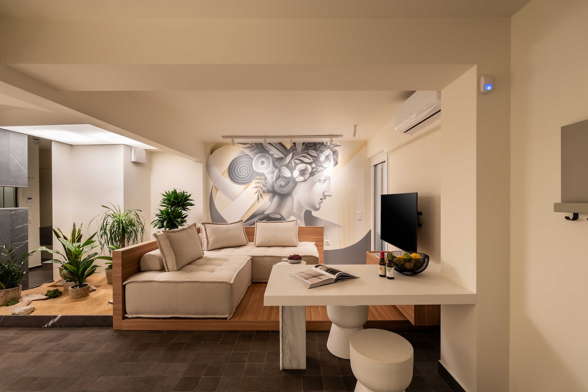 Artemis to spokojne sanktuarium położone w pobliżu tętniącego życiem centrum Aten. Usytuowany na 15 piętrze, zaprojektowany z minimalistyczną estetyką, oferuje zapierającą dech w piersiach panoramę miasta, płynnie łącząc miejską energię ze spokojnym odpoczynkiem. Wyposażony we wszystko, czego potrzebujesz do komfortowego i wygodnego pobytu, oferuje luksusową saunę i jacuzzi, zaprojektowane, aby ukoić Twoje ciało i odmłodzić duszę – oferując idealny wypoczynek od zgiełku codziennego życia.