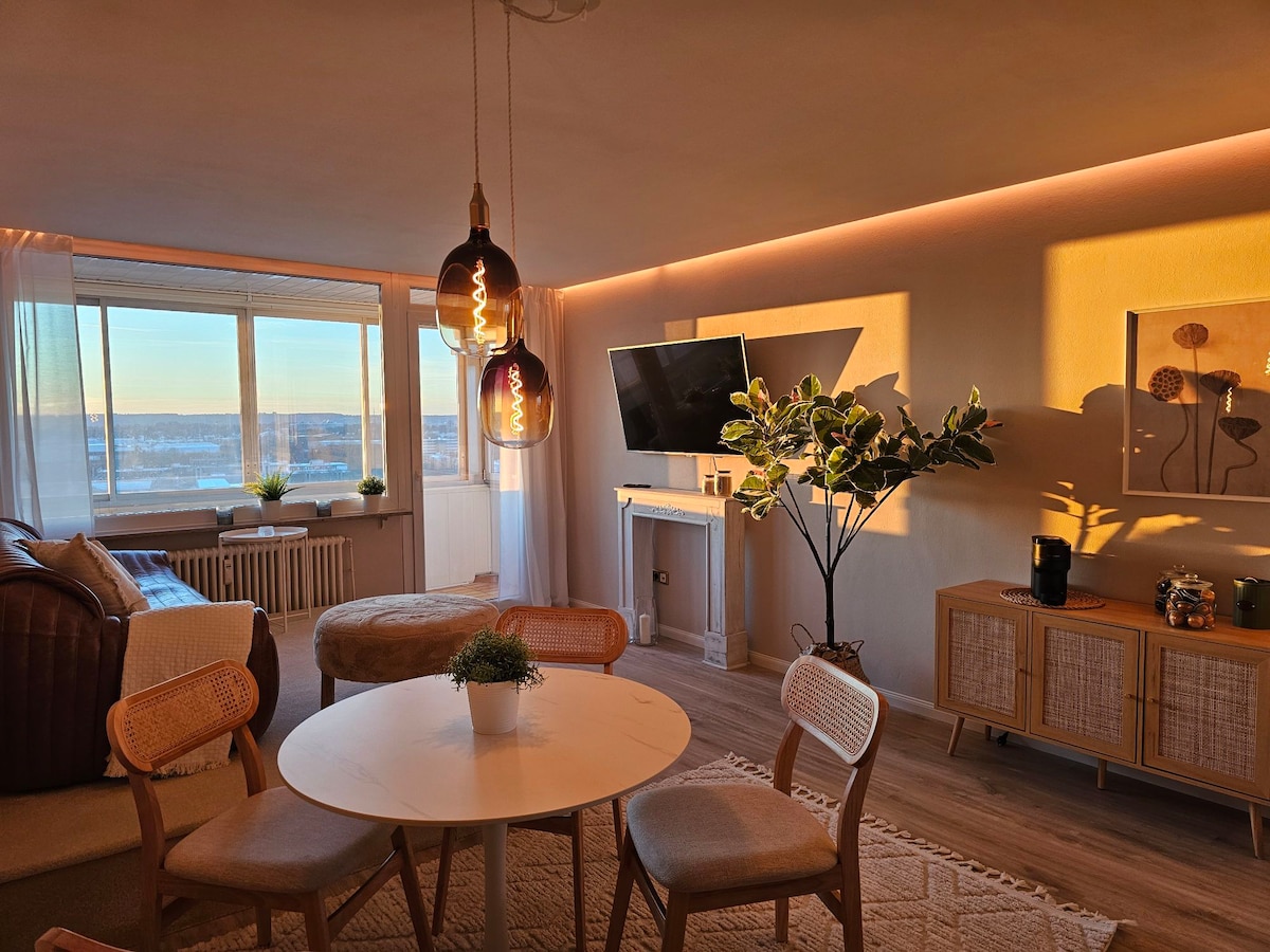 Poznaj Augsburg z góry! Możesz podziwiać panoramiczny widok z 20. piętra naszego stylowego apartamentu w hotelowej wieży. W pełni wyposażony w szybki internet, smart TV (Netflix, Prime, WOW), aneks kuchenny i wygodne miejsce do pracy. Bezpłatny parking na ulicy. Odległość piesza do głównego dworca kolejowego i tramwaju, który zabierze Cię bezpośrednio do centrum miasta. Idealne na podróże służbowe i miejskie.