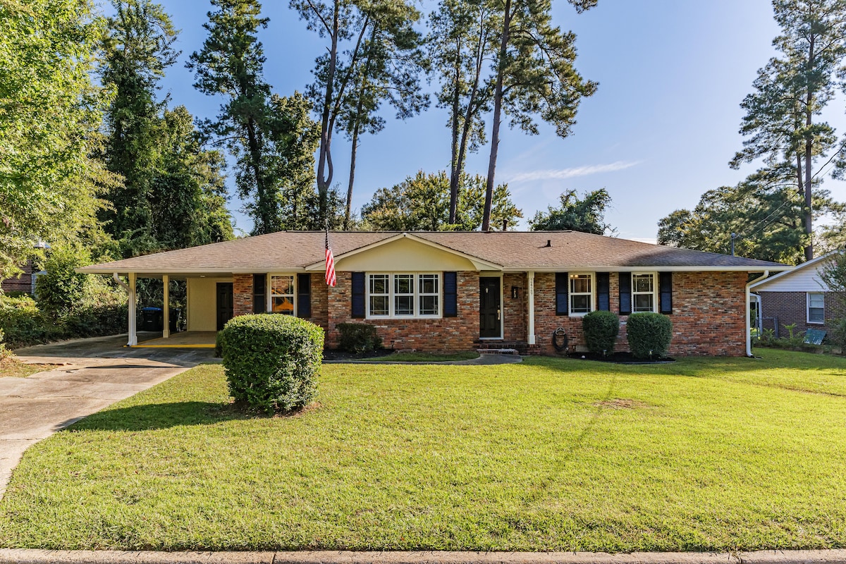 Jesteś zaledwie 1,1 mili od Augusta National Golf Club! Dom z 3 sypialniami/2 łazienkami z dostępem do pralki/suszarki i zadaszoną wiatą. Pokój gier z pełnowymiarową grą zręcznościową i grami planszowymi. Smart TV w salonie i każdej sypialni. Kominek elektryczny w salonie. Okna z zasłonami. Zrelaksuj się na prywatnym i przestronnym podwórku z patio i dużą ilością miejsc siedzących. Jesteś w centrum, w pobliżu wielu sklepów i restauracji. Uniwersytet Augusta znajduje się w odległości 3,5 mili, a Regionalne Lotnisko Augusta w odległości 13 mil.