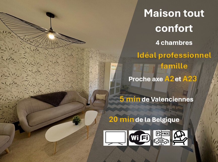 Witamy w naszym przytulnym apartamencie o powierzchni 50 m², idealnym dla 4 osób! Położony w pobliżu dworca kolejowego Valenciennes, oferuje spokój i wygodę podczas przyjemnego pobytu. W pełni wyposażona (Wi-Fi, kuchnia, telewizor, pościel), to idealna baza wypadowa do zwiedzania miasta lub odpoczynku po pracowitym dniu. Niezależnie od tego, czy jesteś w podróży, czy na wakacjach, ciesz się ciepłą i wygodną przestrzenią. Zarezerwuj teraz spokojny wyjazd!