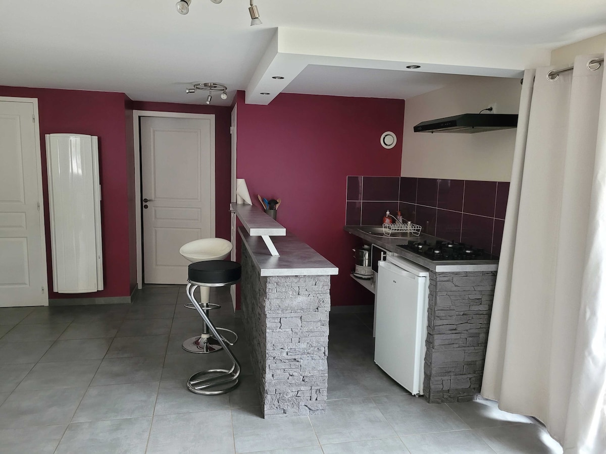Niezależne miejsce o uroku o powierzchni 62 m². Całkowicie odnowione w 2020 roku, to miejsce ma wszystko, czego potrzebujesz, aby wygodnie pomieścić 2 osoby. Jest on równie odpowiedni na krótki pobyt lub na ciche wakacje. Składa się z dużego salonu o powierzchni 45m², 1 sypialni z 1 podwójnym łóżkiem, części biurowej, wyposażonej kuchni, lodówki, kuchenki, piekarnika, łazienki, pięknego wc. Dołączanie tarasu do ciszy i spokoju. Wi-Fi.