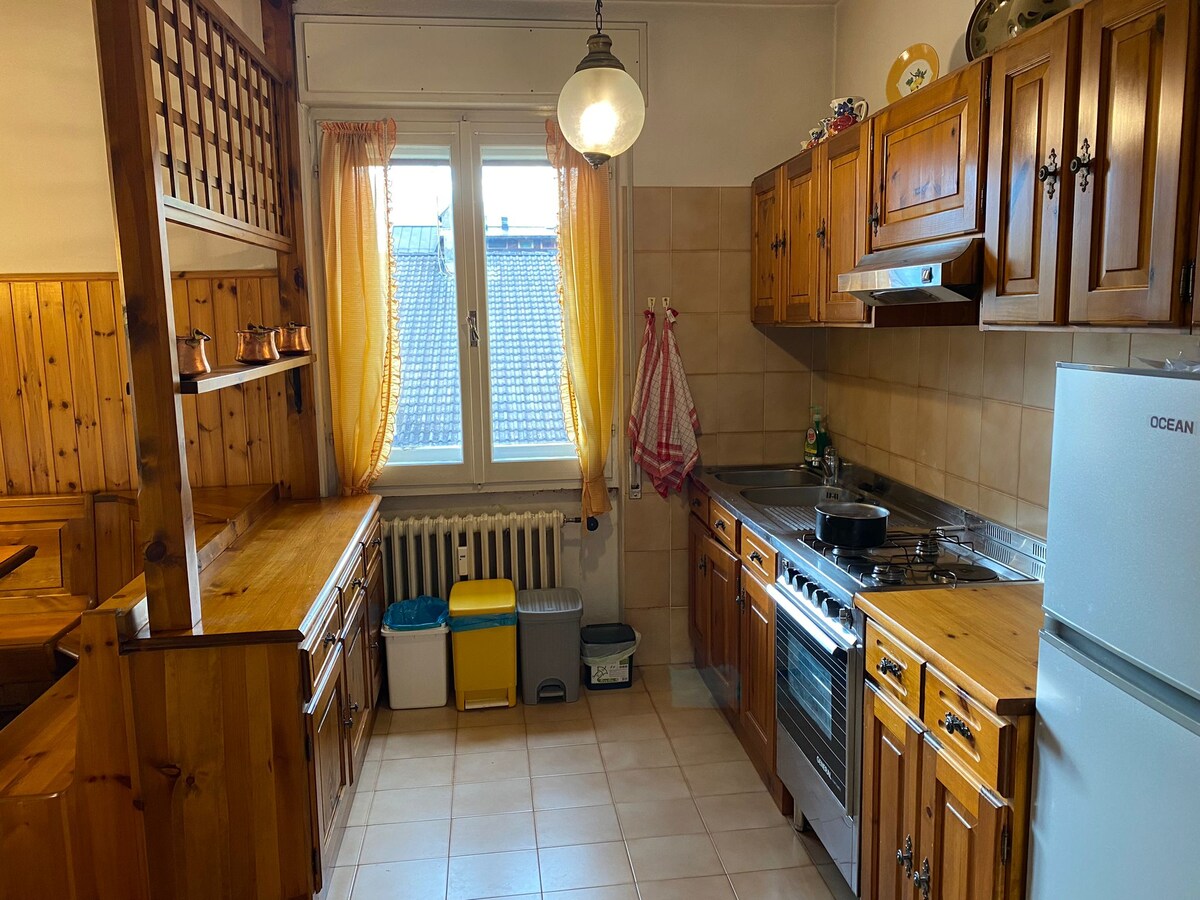 Nasz dom jest ciepły i przytulny, pachnie drewnem, położony w samym sercu miasta. Wygodny apartament wzdłuż deptaka Cortiny, na pierwszym piętrze typowego domu Ampezzo z XIX wieku, łatwo mieć wszystko na wyciągnięcie ręki. Składa się z dużego przedpokoju, salonu, kuchni i jadalni, sypialni dwuosobowej, sypialni z 2 łóżkami pojedynczymi, łazienki z wanną/prysznicem. Wyposażone w zmywarkę, pralkę, suszarkę, telewizor, Wi-Fi i wszystkie niezbędne akcesoria.