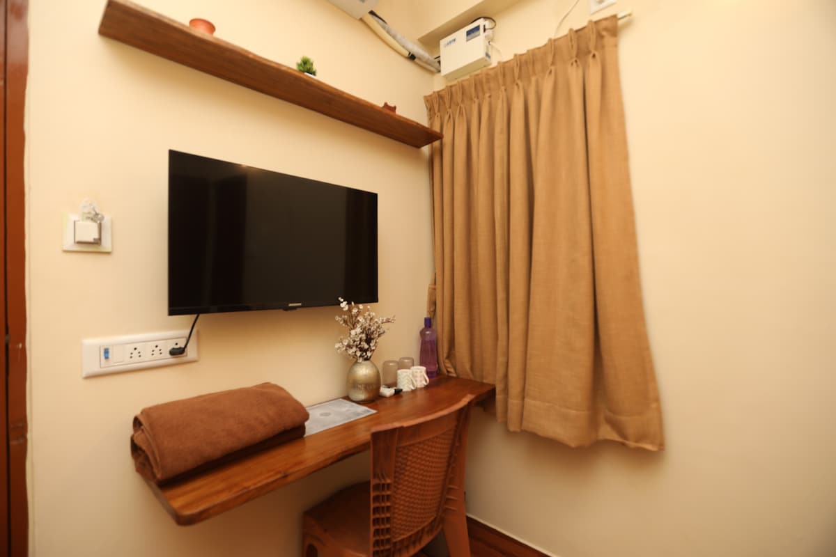 This is a compact, air-conditioned room located on the second floor . Perfect for solo travelers or couples, the room includes high-speed Wi-Fi and a smart TV for your entertainment. Please note: Car parking and lift are not available. Nearby Attractions: Rock Beach – 5 mins drive / 15 mins walk White Town – 10 mins walk Sri Aurobindo Ashram – 10 mins walk Popular cafés and restaurants – within easy reach.