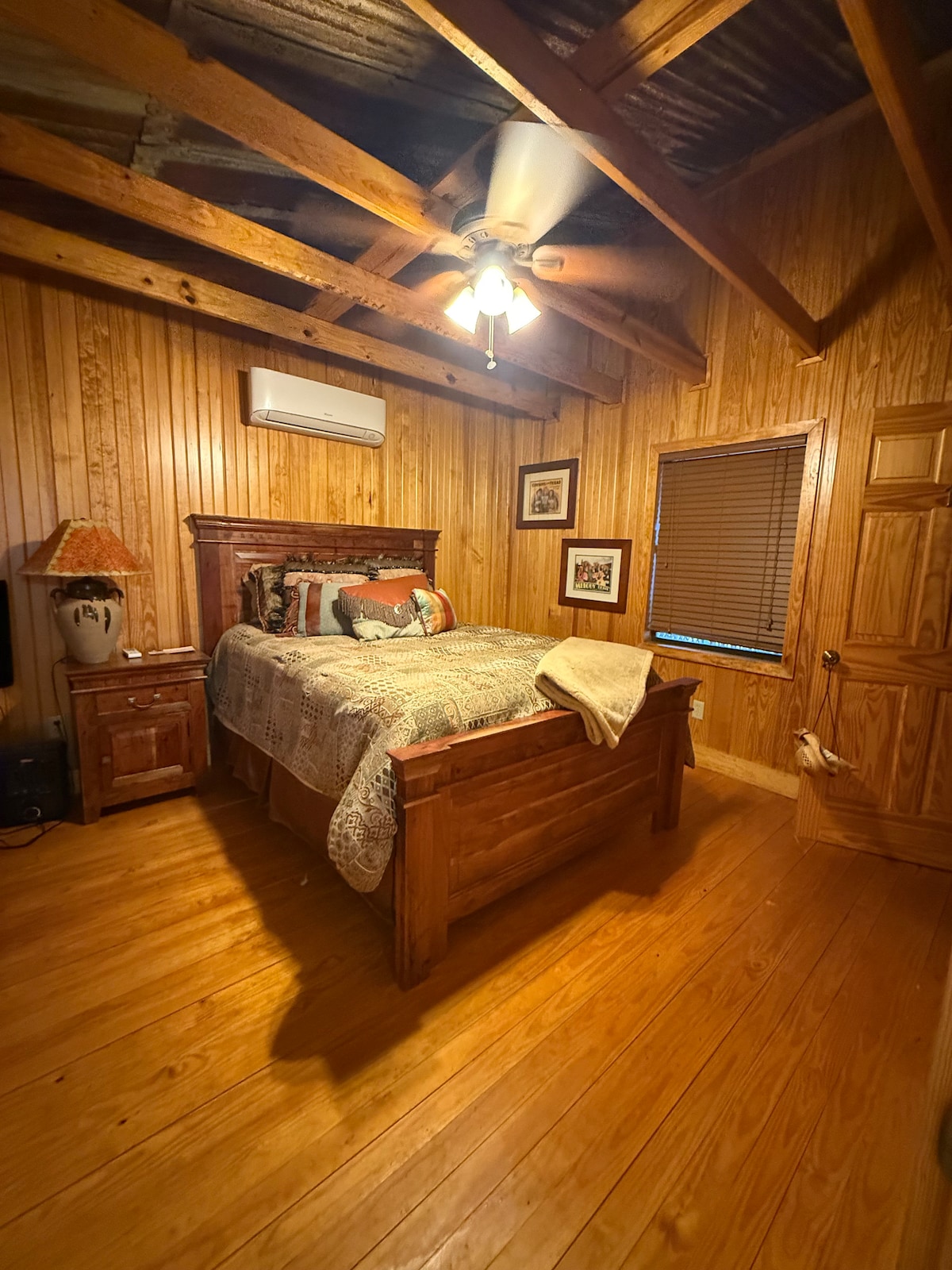 Step back in time and enjoy a cozy stay in this rustic covered wagon. Designed for comfort and charm, it features warm wood interiors, bunk beds plus a comfortable main bed, and thoughtful western details. The wagon includes a private bathroom with shower, along with a fridge and microwave for easy meals. Outside, relax on the porch and enjoy the peaceful country setting. A unique glamping experience perfect for families, couples, and anyone wanting a memorable getaway.