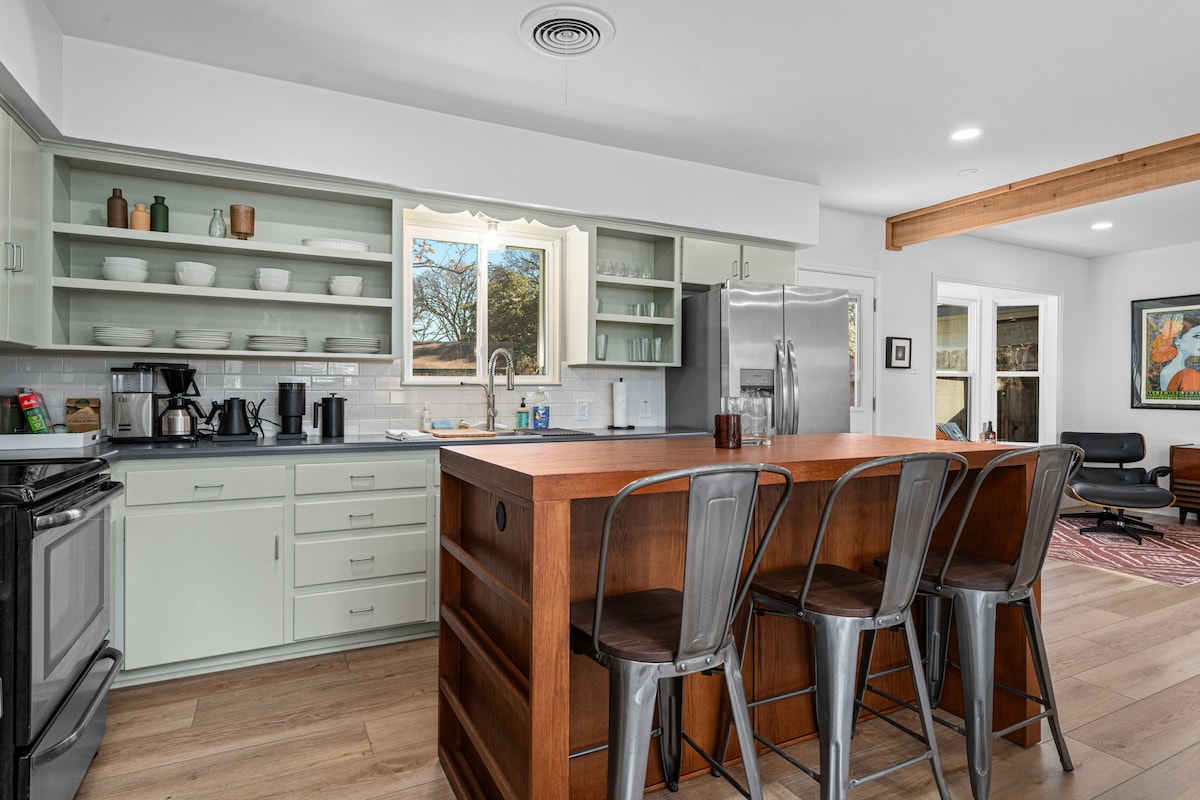 Witaj w DREAM HOUSE ATX – domku z lat 70. Twoich marzeń! Jak widać w 7. odcinku serialu HBO „Lakeside Retreats”, to ręcznie wykonane schronienie z widokiem na jezioro wyróżnia się spokojem, inspirującym wystrojem i ponadczasowym połączeniem z naturą. Zaledwie trzydzieści minut od centrum Austin i krótki spacer do Hippie Hollow i Lake Travis, to miejsce, w którym można zwolnić, odetchnąć i przypomnieć sobie, co najważniejsze…