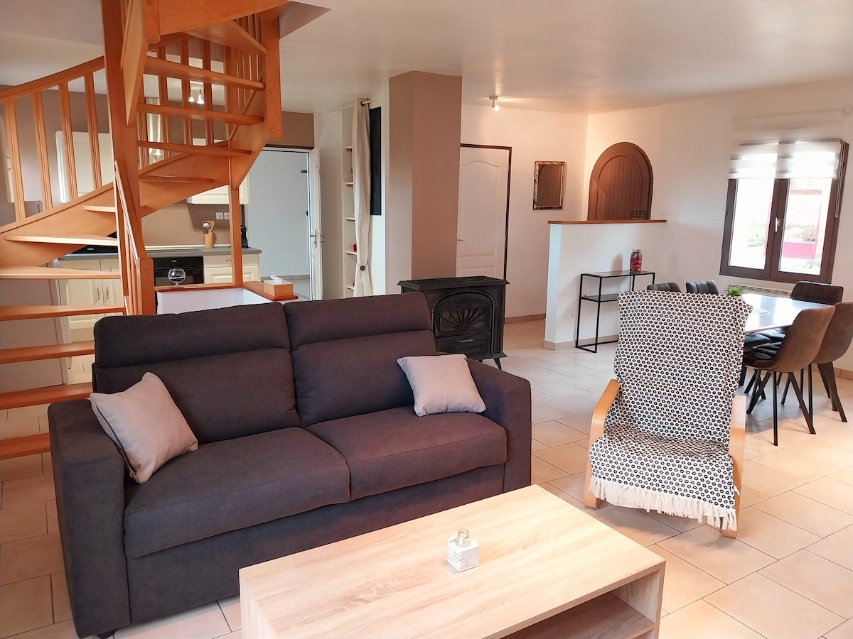 Jasny ✨ pobyt w samym sercu truskawkowej wioski 🍓 Uroczy dom 80 m², cichy, ekspozycja południowa. Etykieta turystyczna 3★ – Prywatny parking – Mały ogród. Idealne połączenie autentyczności i nowoczesnych udogodnień: belki, naturalne światło, schludny wystrój. 2 łóżka na górze, przytulny salon W pełni wyposażona kuchnia (kuchenka, toster, czajnik). Nowa łazienka 2025 z wanną i pralką (€). 2 rowery, gry, konsola, Wi-Fi, telewizor HD. 20 milionów produktów lokalnych! Świetne dla rodzin lub 2 pracowników