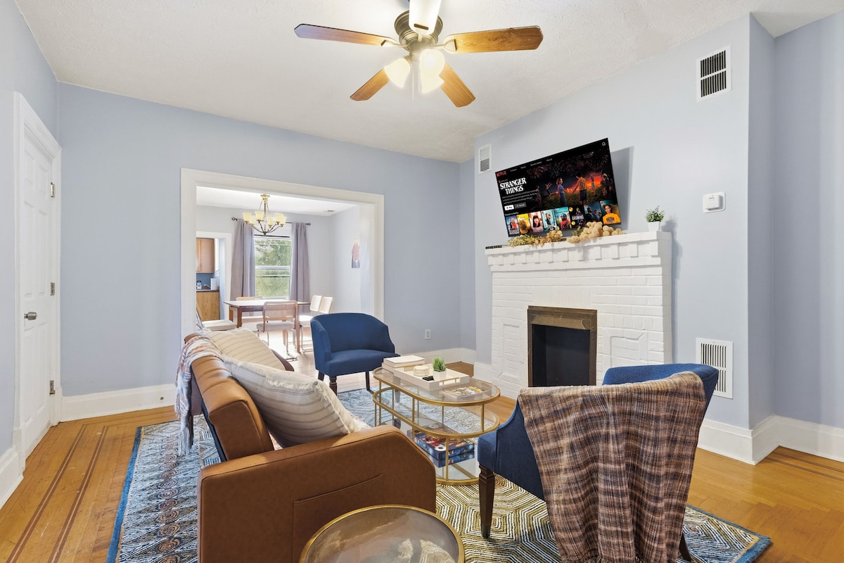Witamy w naszym odnowionym domku z 1896 roku. Wyobrażaliśmy sobie miejsce, w którym goście mogą się przytulić, zatrzymać na chwilę i doświadczyć życia w mieście pośród spokoju parku. Wierzymy, że sztuka powinna być dzielona, więc zaprojektowaliśmy dom tak, aby zawierał kolorowe elementy, które przekazują szczęście. Dom został świeżo odnowiony i udekorowany mieszanką nowoczesnych i klasycznych elementów. Dom znajduje się w odległości spaceru od ponad 250-akrowego Riverview Park, więc czekają na Ciebie przygody z dziką przyrodą i szlakami!