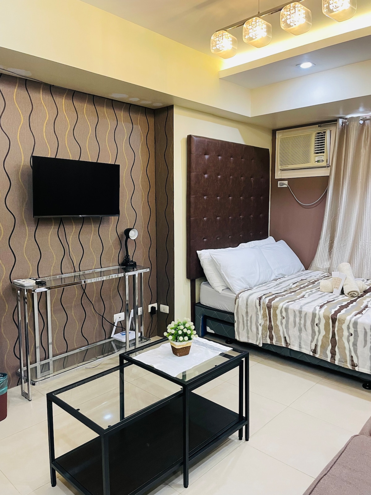 Odkryj wygodę życia w mieście w naszym komfortowym studio położonym w IT Park, tętniącym życiem sercu miasta. Dzięki bliskości Sugbo Mercado i Ayala Central Bloc, nasz nowoczesny apartament jest idealny dla rodzin, par i osób podróżujących służbowo. Cechy nieruchomości: • Kuchnia • Łóżko typu queen-size • Pojedyncza sofa • Ręczniki i podstawowe przybory toaletowe • Szybkie Wi-Fi 200 Mb/s • Całodobowa ochrona • Basen dla dorosłych i dzieci na śwież Przyjedź i doświadcz z nami tego, co najlepsze w miejskim życiu!