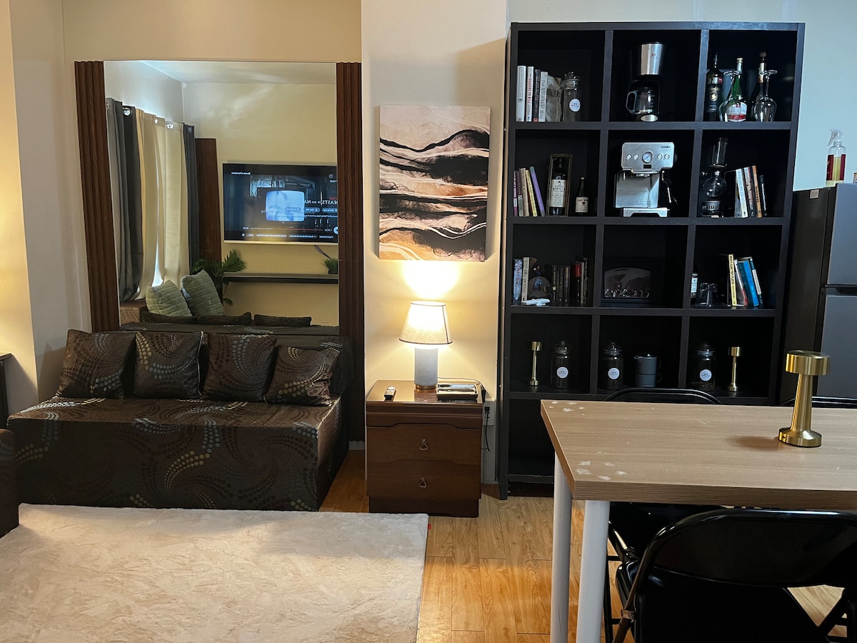 Witaj w swoim domu z dala od domu w samym sercu Cebu! Ten w pełni umeblowany apartament typu studio znajduje się w Cebu IT Park – najlepszym miejscu w Cebu. Korzystaj z basenów, szybkiego internetu/Wi-Fi i telewizora Smart TV z Netflix. Jednostka jest wyposażona w wygodne łóżko, świeżą pościel i ręczniki oraz w pełni wyposażoną kuchnię i jadalnię. Pokochasz również wygodę związaną z bliskością Sugbo Mercado, Ayala Mall, pralni, sklepów spożywczych, bankomatów, płatnych parkingów i innych.