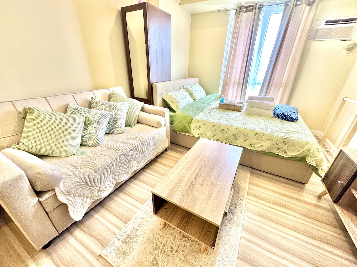 Witaj w swoim domu z dala od domu w samym sercu Cebu! Ten w pełni umeblowany apartament typu studio znajduje się w Cebu IT Park – najlepszym miejscu w Cebu. Korzystaj z basenów, szybkiego internetu/Wi-Fi i telewizora Smart TV z Netflix. Jednostka jest wyposażona w wygodne łóżko, świeżą pościel i ręczniki oraz w pełni wyposażoną kuchnię i jadalnię. Pokochasz również wygodę związaną z bliskością Sugbo Mercado, Ayala Mall, pralni, sklepów spożywczych, bankomatów, płatnych parkingów i innych.