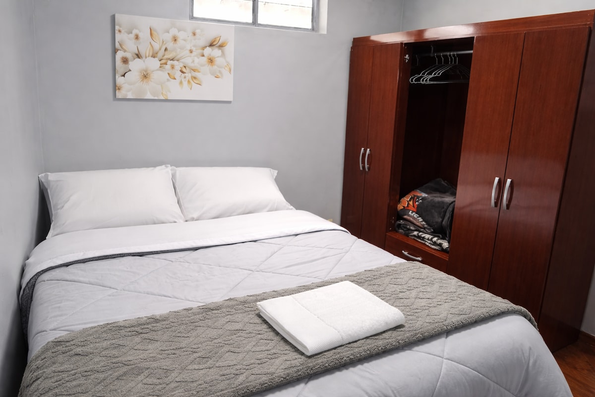 Relájate con toda la familia en este lugar acogedor y tranquilo, departamento de 2 habitaciones para 5 personas, cuenta con sala, cocina y lavandería equipada, 1 baño con agua caliente, wifi. Cerca al terminal terrestre y la UNSCH altura de puente Enace a 5 minutos de la plaza mayor de Ayacucho y espacios recreativos.