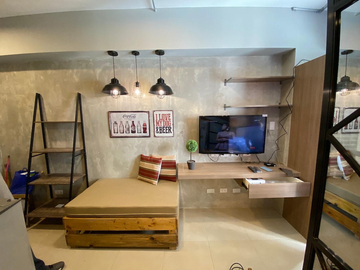 Modern tropical-inspired unit at M Place @ South Triangle Tower D, Panay Ave., Quezon City. Enjoy high-speed internet, Smart TV with Netflix, a kitchenette (no cooking), and a cozy work station. Located in a vibrant commercial hub with grocery, bank, dining, laundromat & cafés on the ground floor—perfect for a relaxing yet convenient stay in the heart of the city.