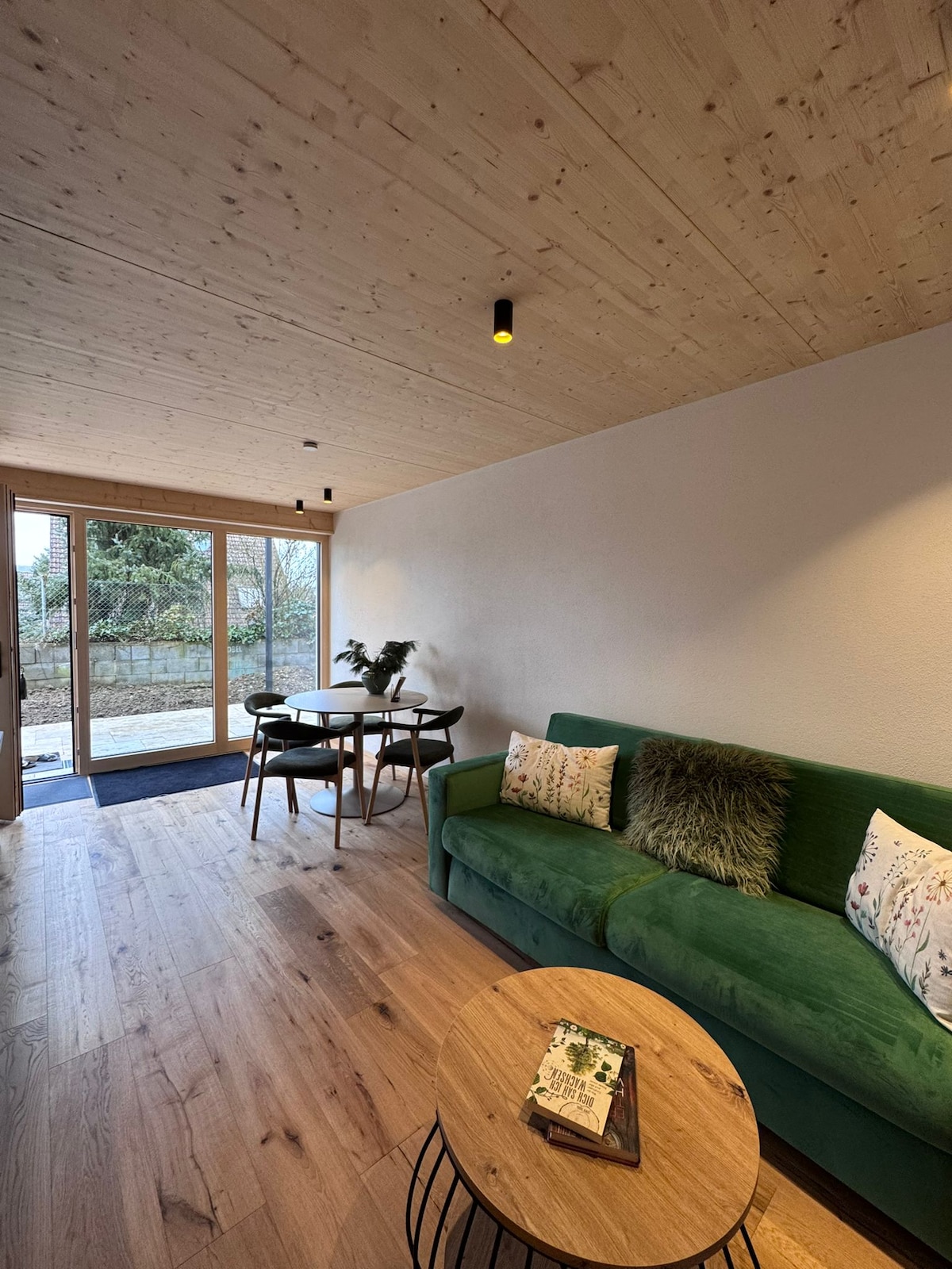 Apartament znajduje się na parterze naszego domu. W mieszkaniu i na tarasie możesz cieszyć się całkowitym spokojem i ciszą. Możesz spacerować wokół stawów w odnowionym kamieniołomie i po okolicznych lasach. Niektóre stawy po kamieniołomach zostały przekształcone w przestronne, naturalne plaże. Ścieżka rowerowa biegnie tuż obok domu. Dolina Górnego Dunaju, Jezioro Bodeńskie i Jura Szwabska znajdują się w odległości od 10 do 30 minut jazdy samochodem.