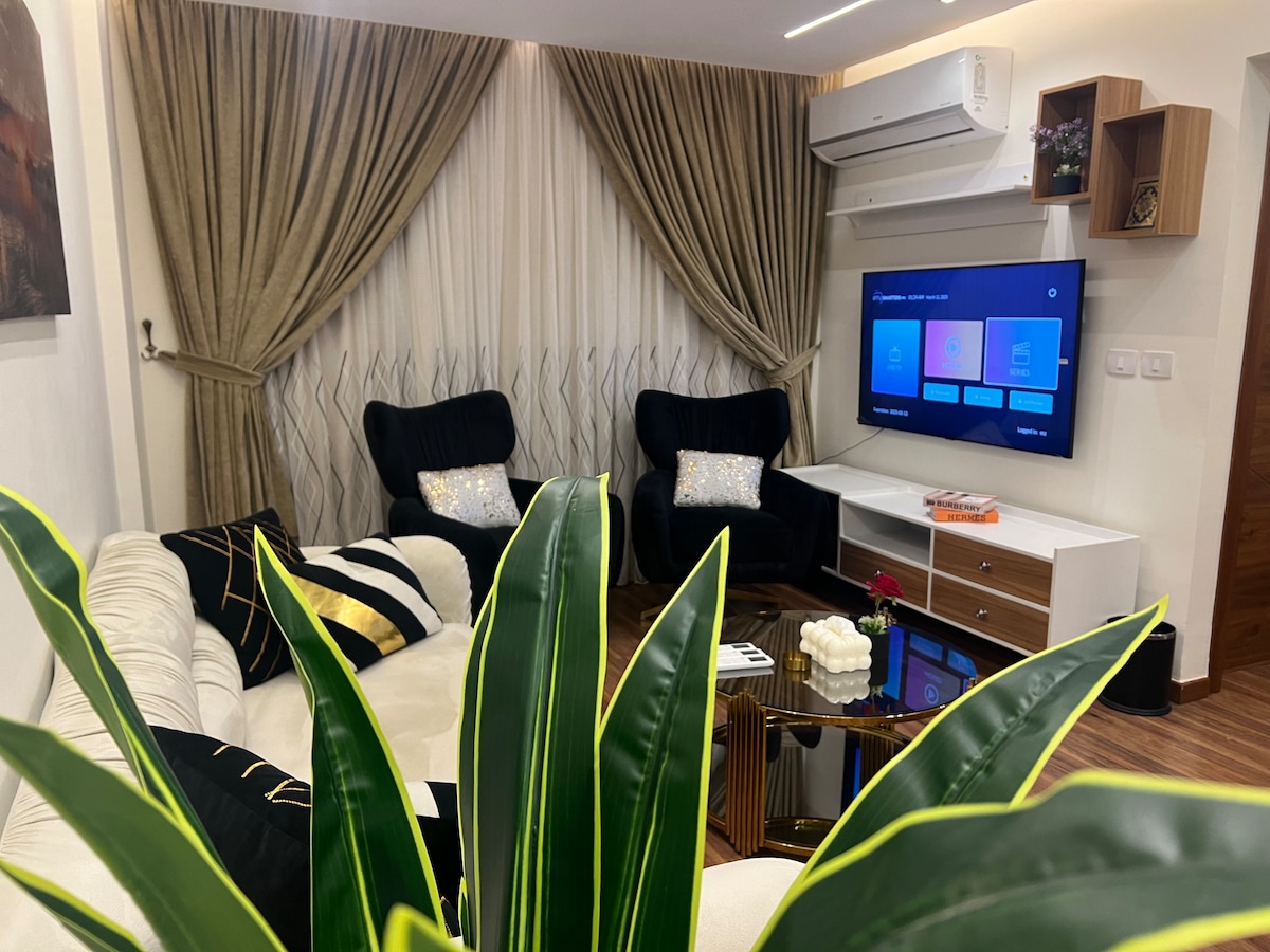 This spacious apartment is fully furnished and equipped with everything you need for a comfortable stay. Relax and watch your favorite movies and TV shows on the sound system with access to Netflix, beIN Sports, Shahid, Watch it, and Starzplay. Located in a central location, close to all the major attractions. Just a short walk for bus station , the shops, and the restaurants. Whether you're traveling for business or pleasure, this modern, stylish apartment is the perfect place to stay.