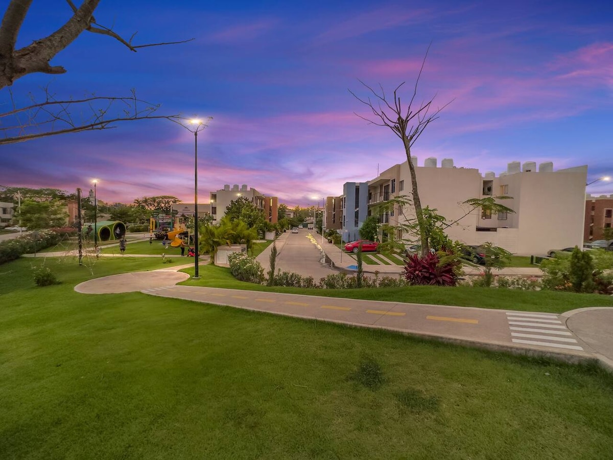 ✨ Poczuj spokój Nuevo Vallarta ✨ Oderwij się od rutyny w tym pięknym apartamencie, idealnym na wakacje z rodziną lub przyjaciółmi. Położony w ekskluzywnej okolicy Nuevo Vallarta, oferuje piękne plaże i rozległy obwód idealny do spacerów, joggingu lub jazdy na rowerze (dostępny w holu). Ponadto będziesz mieć bezpośredni dostęp do plaży, dzięki czemu będziesz mógł cieszyć się każdą chwilą nad morzem. Miejsce zaprojektowane tak, aby Twój pobyt był komfortowy, relaksujący i pełen dobrych wspomnień!