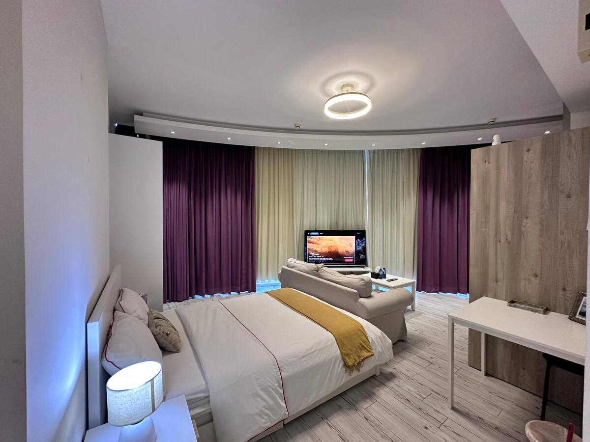The studio offers an unmatched blend of luxury and sophistication, providing top-tier service and amenities in the area. Guests can enjoy a kids' playground, playroom, arcade room, and an indoor cinema with Friday screenings. Other facilities include a fully equipped gym, sauna, steam room, pool, Jacuzzi, prayer room, and a versatile multipurpose hall for events. Conveniently located, the studio is close to major tourist attractions, making it an ideal spot for both relaxation and convenience.