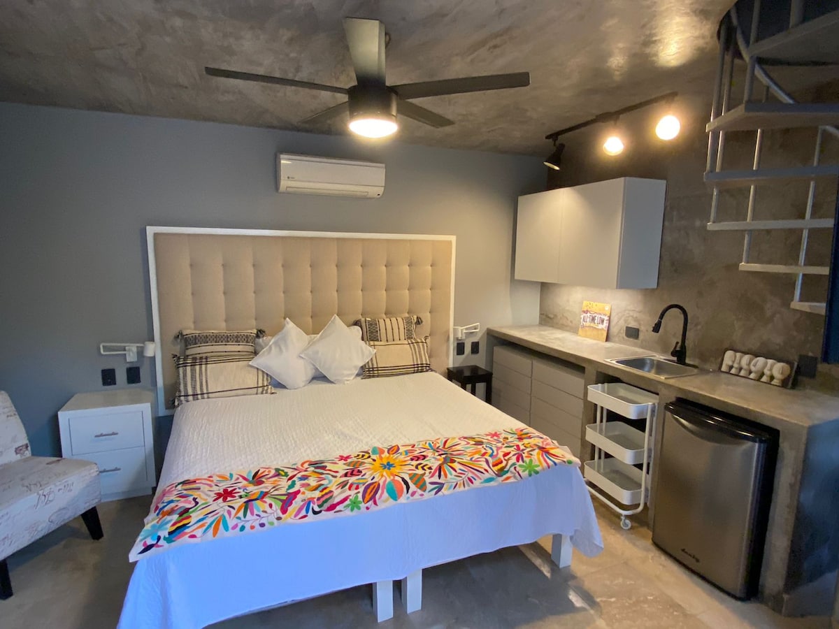 La Casita Chulita to przestronne studio z wysokim sufitem, w stylu bohemian, na drugim piętrze naszego głównego domu. Położona na terenie rodzinnej posiadłości Martina w centrum Cabo, ta casita znajduje się w odległości spaceru od wszystkiego, co centrum ma do zaoferowania – przystani, życia nocnego, restauracji, plaż i nie tylko. Albo zrelaksuj się w hamaku w naszym bujnym ogrodzie po całym dniu surfingu. Wszystko, co najlepsze w tej uroczej casita. Dodatkowe oferty tej nieruchomości – więcej informacji znajdziesz w profilu.