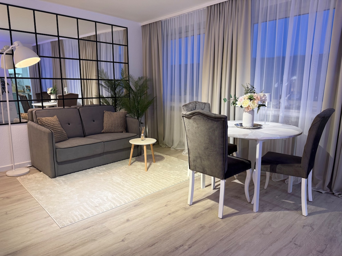 Nowy apartament (z oddz. wejściem) znajduje się w sercu najpiękniejszej dzielnicy Essen: Werden. Czeka na Ciebie: duża, stylowa kuchnia z salonem, w tym stołem i wygodną sofą w nasłonecznionym ogrodzie zimowym (widok na zieleń). Przestronna sypialnia z dużym łóżkiem małżeńskim i szafą wnękową. Jasny korytarz i stylowa łazienka z prysznicem deszczowym/siedziskiem. Dodatkowo: nowy parkiet/płytki, Wi-Fi, pościel, ręczniki, ekspres do kawy itp. W odległości spaceru od kawiarni, restauracji, Baldeneysee 2 min.
