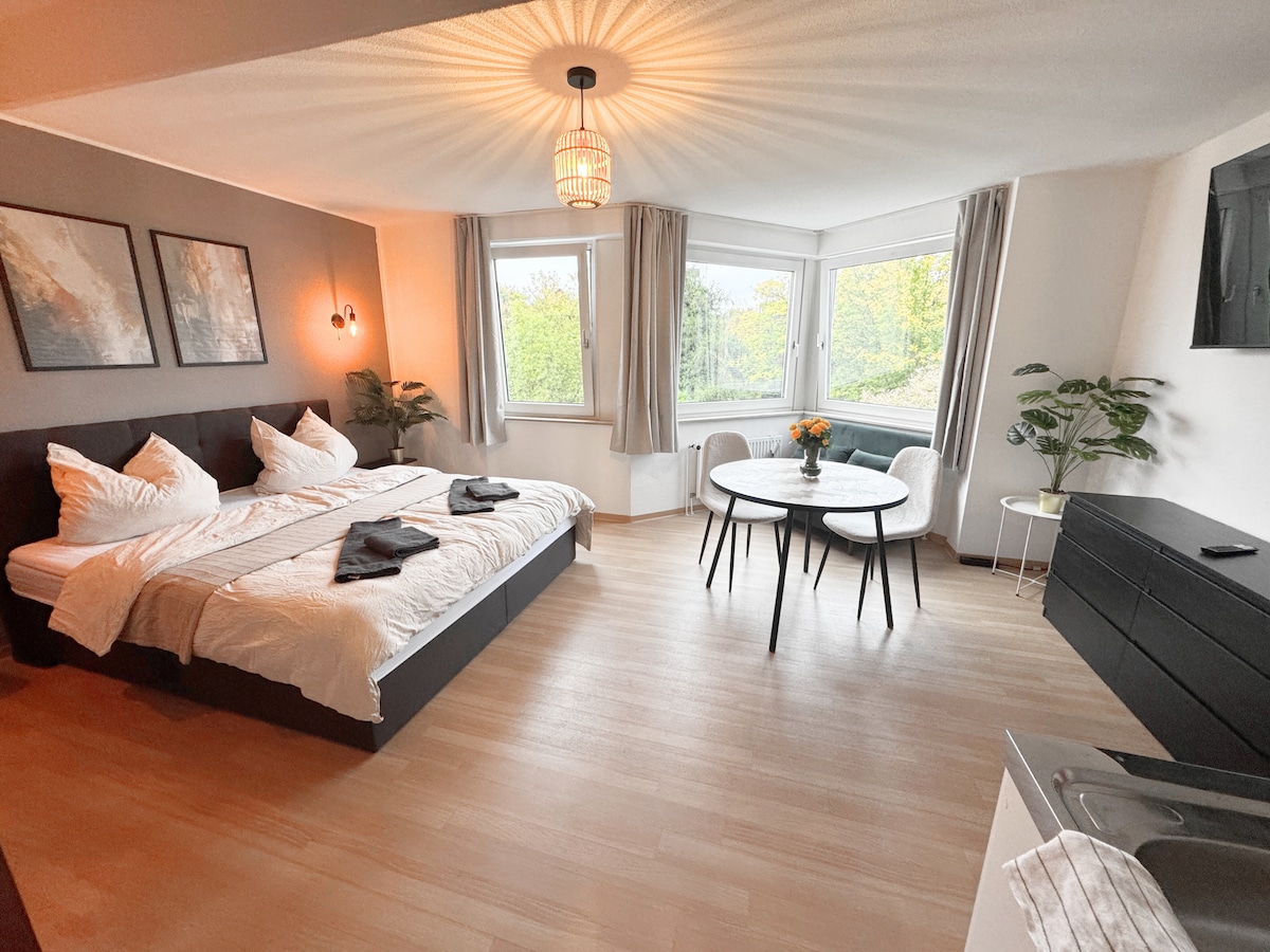Nasz całkowicie odnowiony apartament o powierzchni 30 metrów kwadratowych posiada część sypialną i dzienną dla 2 osób. Nowoczesna łazienka z prysznicem i w pełni wyposażona kuchnia. Ręczniki, pościel i Wi-Fi są dostępne bezpłatnie. Nasz apartament jest idealnym miejscem pobytu zarówno dla osób podróżujących prywatnie, jak i służbowo. Pobliskie jezioro Baldeneysee i Ruhr oferują optymalne warunki do idyllicznych wycieczek rowerowych.