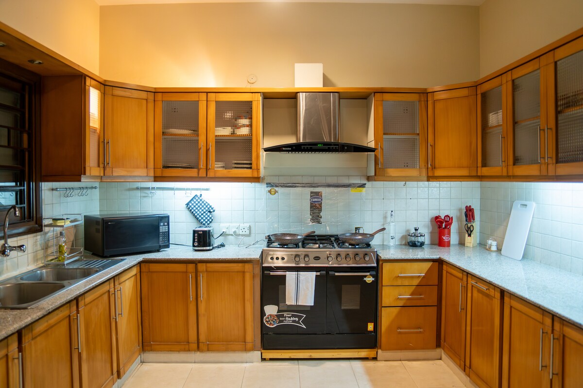 WITAMY w A Luxury Residence, eleganckim, nowo wybudowanym domku w spokojnej i prestiżowej dzielnicy w najlepszej lokalizacji DHA Karachi – zaledwie 30 minut od Międzynarodowego Portu Lotniczego Jinnah i zaledwie 10 minut od Dolmen Mall Clifton i Sea View Beach. Ten dwupiętrowy domek oferuje wygodne i stylowe zakwaterowanie dla maksymalnie 8 osób. Są tu 4 sypialnie z łazienką, każda wyposażona w nowoczesne udogodnienia, które zapewniają luksusowy i niezapomniany pobyt. Akceptujemy wyłącznie rezerwacje od rodzin.