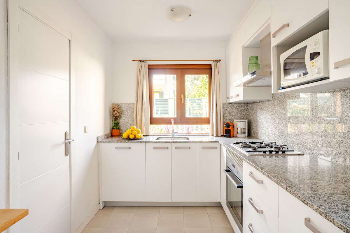 Cicha i relaksująca przestrzeń na świeżym powietrzu dzięki basenowi i tarasom z przyjemnymi widokami, z których można cieszyć się pysznym grillem. Dojazd do domu samochodem i własny parking. Dom składa się z typowego wejścia na Majorkę, salonu z kominkiem i w pełni wyposażonej kuchni. Dwie sypialnie dwuosobowe. Łazienka z pralką i suszarką. Ogrzewanie, klimatyzacja i WI-FI w całym lokalu. Moje zakwaterowanie jest dobre dla par, poszukiwaczy przygód, rodzin (z dziećmi).