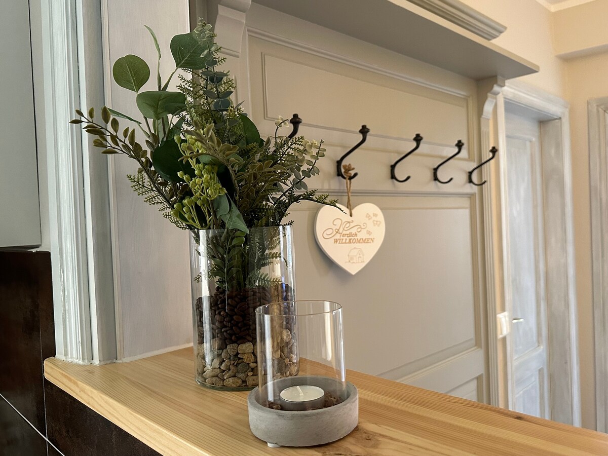 Witaj w UNESCO w Quedlinburgu, ten uroczy apartament dla niepalących jest do wynajęcia w odległości spaceru od rynku, zamku i różnych obiektów konferencyjnych. Apartament na parterze został całkowicie odnowiony na początku 2021 roku wyłącznie z materiałów organicznych, takich jak glina, prawdziwa podłoga drewniana i farby ścienne na bazie naturalnej. Łącznie przestrzeń mieszkalna jest podzielona na ok. 55 m2 z 2 pokojami. 100 Mbit/s WLAN - praca mobilna gotowa