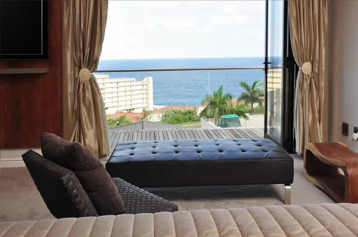 Oszałamiający apartament z własnym wyżywieniem Umdloti na długi weekend/wynajem wakacyjny. Dla 2 osób dorosłych, w pełni wyposażona kuchnia, dstv, WiFi, klimatyzacja, całodobowa ochrona, basen, patio z widokiem na morze, Braai. Plaża , rezerwat przyrody, laguna, sklepy, garaż i restauracje. 8 minut od wioski Umhlanga, 5 minut King Shaka Airpot. Widok na morze i patio z gazem Braai. Snurkowanie z pływacką zatoką wędkarską bezpieczną dla dzieci. Niezbędnik dla małej rodziny lub pary. Widok na wieloryby i delfiny z balkonu.