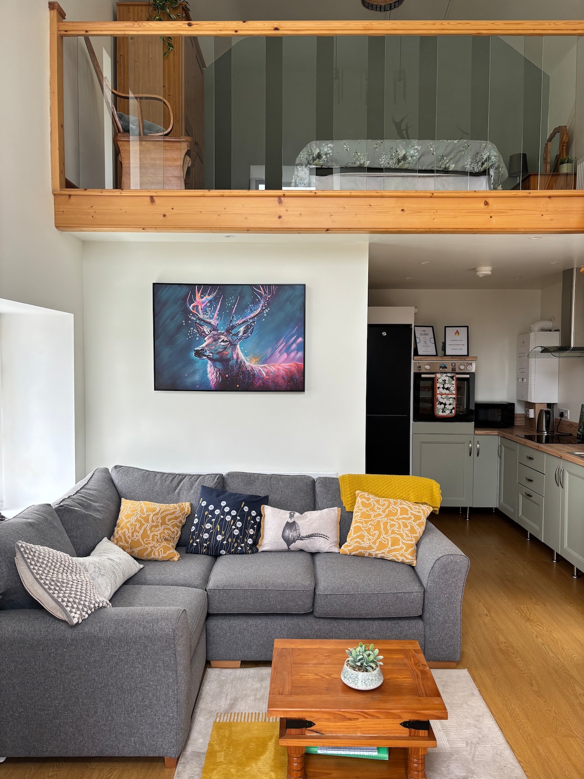 Swallows Haven to piękny, urokliwy domek z 2 sypialniami i rozkładaną sofą w salonie. Otwarta kuchnia/jadalnia i salon z kominkiem. Nowoczesna kuchnia z kuchenką elektryczną, piekarnikiem z wentylatorem, czajnikiem, tosterem, kuchenką mikrofalową i pełną gamą naczyń kuchennych do gotowania posiłków. Duża wyspa z barem śniadaniowym i stołkami. Pomieszczenie gospodarcze z pralką i suszarką, miejsce do przechowywania. Jasna łazienka z prysznicem nad wanną. 2 sypialnie, podwójne łóżka z luksusową pościelą, szafa, szuflady i szafki.
