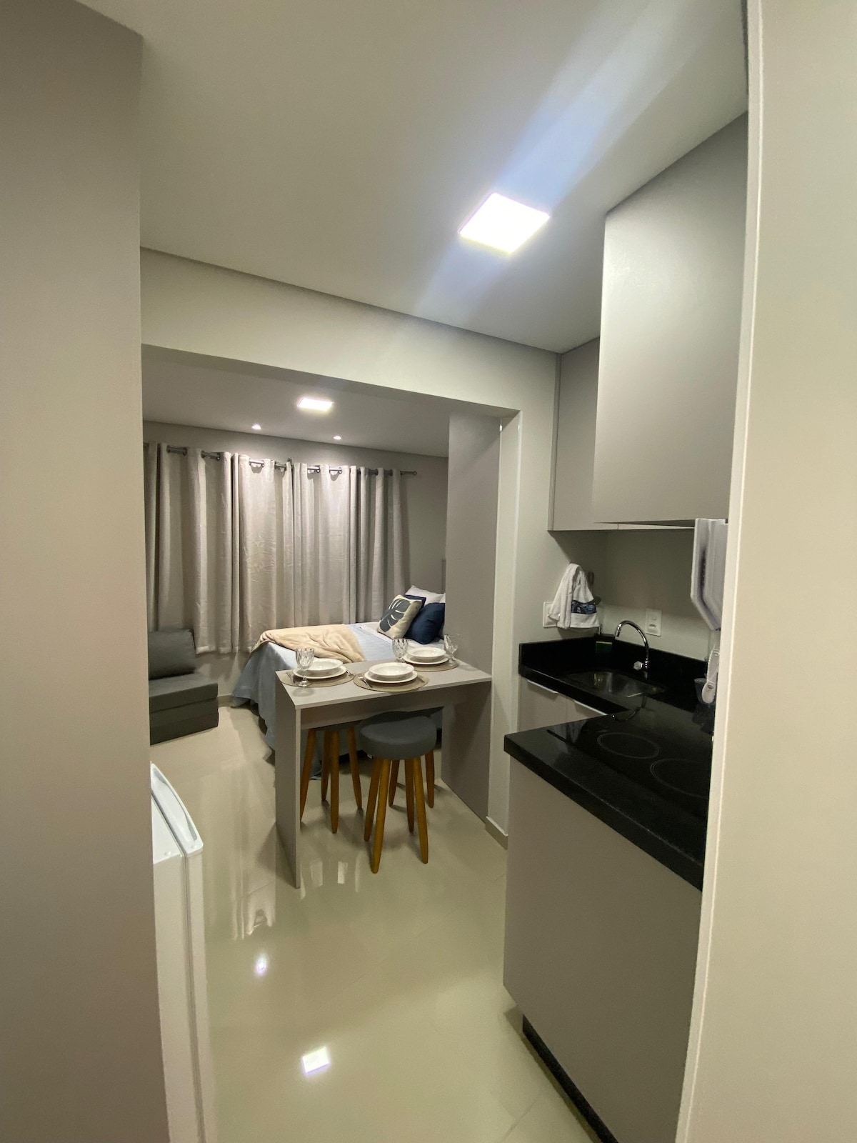 Odkryj komfort i praktyczność tego Studio, idealnego dla maksymalnie trzech osób, z doskonałą lokalizacją w Balneário Camboriú. Dzięki nowoczesnemu i przytulnemu wystrojowi przestrzeń została zaprojektowana tak, aby zapewnić najlepsze wrażenia podczas pobytu. Przestrzeń W pełni umeblowane studio, w pełni wyposażona kuchnia ze wszystkimi przyborami oraz pościel i ręczniki. Inne uwagi Parking z miejscem o szerokości 2,20 m i długości 4,20 m.