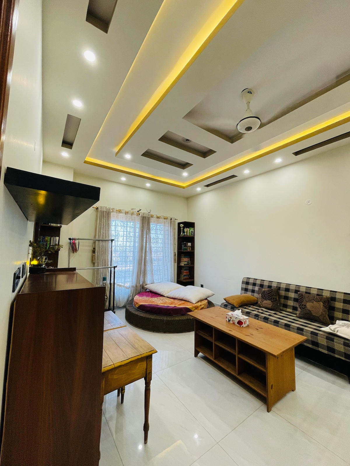 Witaj w spokojnej wycieczce w Bahria Town Karachi! Ten nowoczesny, w pełni umeblowany dom oferuje wygodę z rowerami, grami planszowymi, Netflixem, całodobową ochroną, szybkim Wi-Fi i dobrze wyposażoną kuchnią. Położony kilka minut od Bahria Adventure Land, Danzoo i meczetu Grand Jamia, będziesz cieszyć się bliskością najważniejszych atrakcji. W pobliżu znajdziesz sklepy, restauracje i miejsca rozrywki, dzięki czemu jest idealna dla rodzin, par lub osób podróżujących służbowo, które szukają spokojnego pobytu.