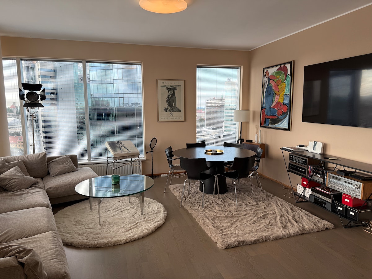 Elegancki apartament, panoramiczne widoki na miasto i sauna.