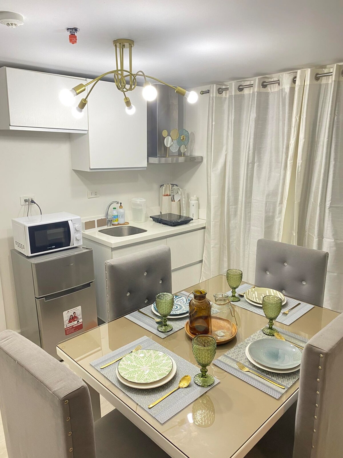 W pełni umeblowany standard europejski, wyjątkowy i stylowy, umiejscowiony na trzecim piętrze w pobliżu bazy internetowej Clark. 15 minut drogi od Clarka i bardzo łatwo dostępne od NLEX i SLEX bez kłopotów i podróży po lokalnych drogach, aby uniknąć korków. To, co widzisz, jest tym, co naprawdę dostajesz. Urządzenie jest w pełni wyposażone w ciepłą i zimną wodę z urządzeniami kuchennymi o wysokim standardzie i meblami Za 5 minut jazdy samochodem oraz tętniąca życiem restauracja i bary, takie jak Side Grillers i Modern Hapag Kainan