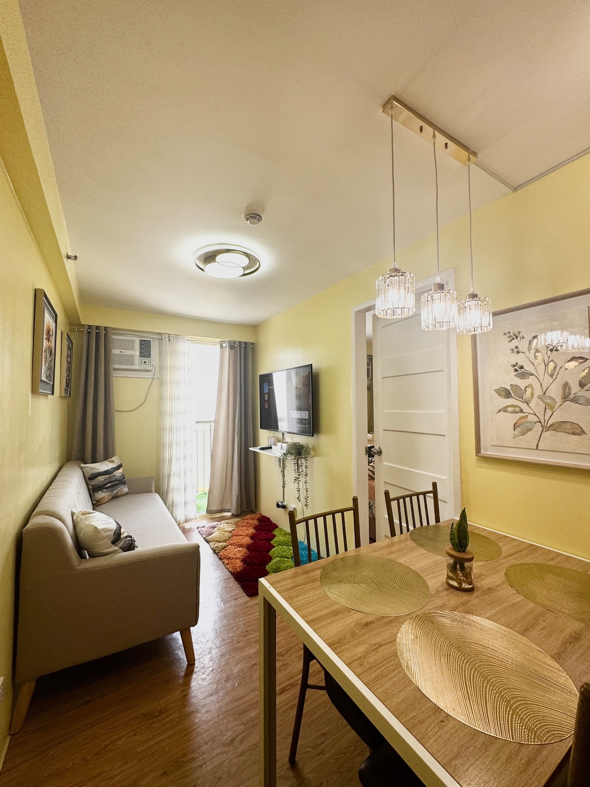 Enjoy a comfortable experience in this delightful 1 bedroom suite (corner unit, ground floor)that provides a perfect blend of elegance,comfort and convenience. Nestled in a gated community with 24 hour security that has the following amenities - swimming pool, kids playground, basketball court and clubhouse. Inclusions 👇 FREE Wifi Comfy bed Flat screen TV with NETFLIX Rice Cooker Refrigerator Induction Cooker Automatic Washing Machine Free drinking Water Microwave Electric Kettle Kitchenwares