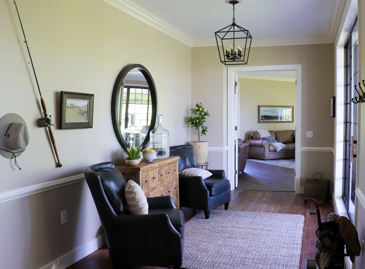 Ten klasyczny dom wakacyjny na wsi, położony na 35 akrach prywatnego terenu, spełnia wszystkie wymagania relaksującego wypoczynku na świeżym powietrzu. Wyobraź sobie, że po dniu spędzonym na odkrywaniu naturalnego piękna Wirginii, wracasz do swojego domu na wzgórzu, gdzie czeka na Ciebie kieliszek wina, długi prywatny podjazd i przestronny taras z meblami. Ta oaza na świeżym powietrzu z 2 sypialniami i 2,5 łazienkami z pewnością sprawi, że wszyscy będą mogli się odłączyć, wyjść na zewnątrz i cieszyć się życiem w danej chwili.