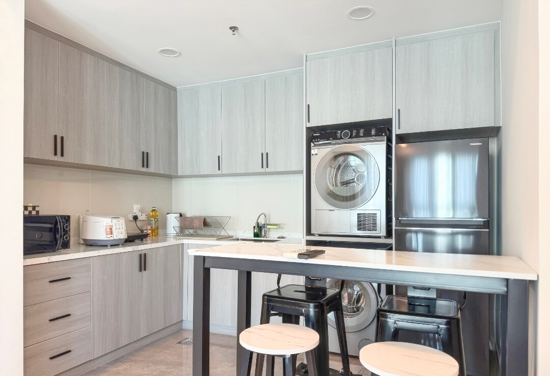 Rozkoszuj się luksusem i komfortem w naszym przytulnym apartamencie Arte Mont Kiara, idealnym dla 4 osób. Zrelaksuj się w łóżku typu king-size lub na rozkładanej sofie IKEA i ciesz się prywatnym kinem dzięki telewizorowi 65" 4K UHD Smart TV i kinu domowemu Sonos. Streamuj Netflix, Disney+ i inne dzięki szybkiemu Wi-Fi. Baw się dobrze dzięki darmowym grom na PS4, takim jak EA FC24 i Overcooked. Lekkie gotowanie jest łatwe dzięki kuchence, kuchence mikrofalowej i tosterowi. Bezpłatna herbata i kawa, a przekąski dostępne są w naszym minibarze.