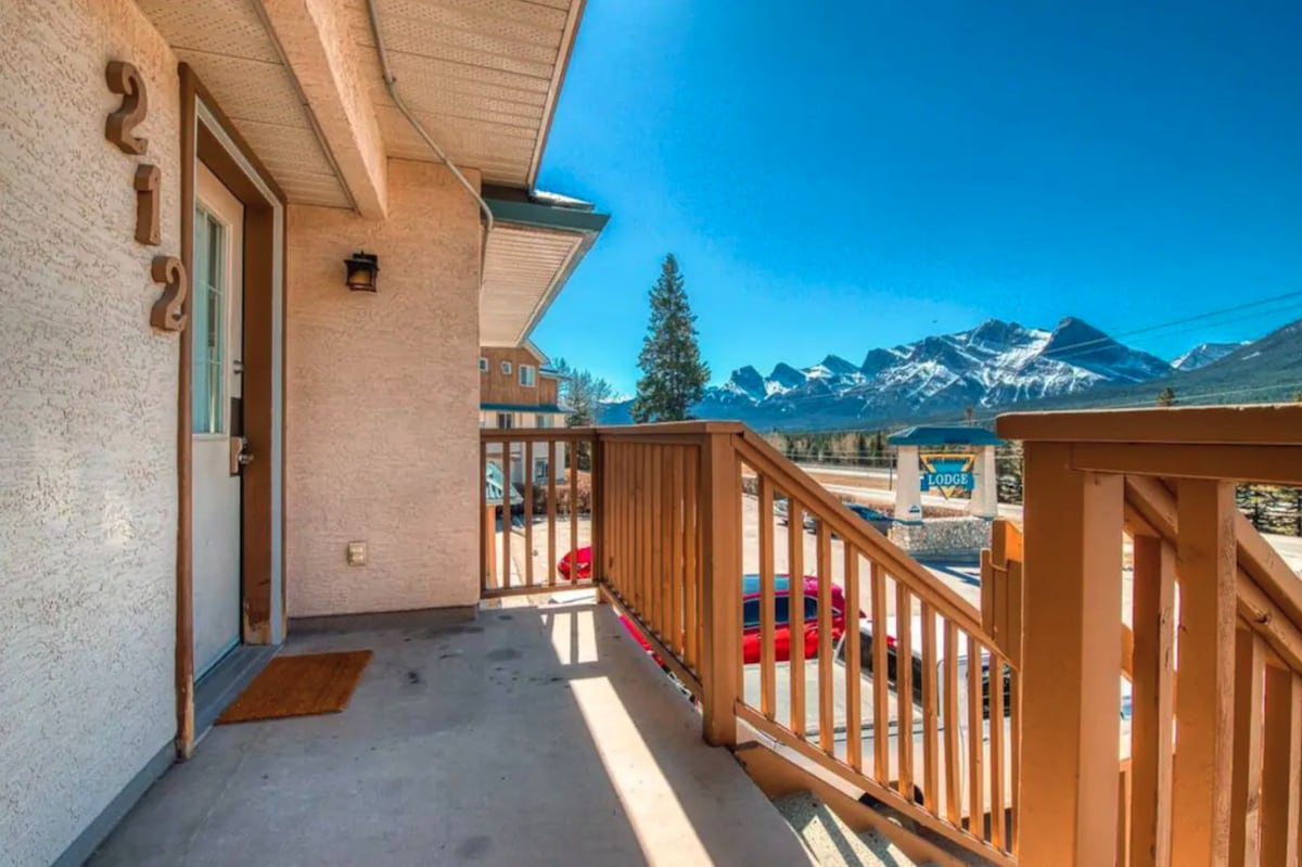 Basen i jacuzzi otwarte przez cały rok. Cieszymy się, że możemy dzielić się naszym szeregowcem w Canmore, aby inni mogli poczuć się komfortowo i podziwiać widoki. Ciesz się słonecznymi wieczorami na balkonie od strony południowej z widokiem rozciągającym się od Three Sisters do Cascade Mountain. Nasze mieszkanie z 2 łóżkami i 3 łazienkami ma prywatny ogrzewany garaż, balkon, grill, w pełni wyposażoną kuchnię, pralnię, 3 telewizory i przepustkę do parków narodowych do wypożyczenia. Krótki spacer do centrum miasta sprawia, że nasze miejsce jest doskonałą lokalizacją, aby cieszyć się wakacjami.