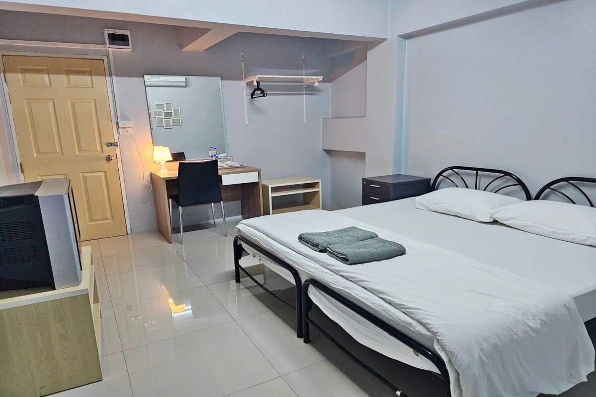 Pokój z podwójnym łóżkiem w pobliżu lotniska BKK Wygodny i czysty prywatny pokój z podwójnym łóżkiem, idealny dla par lub podróżujących w pojedynkę. Ciesz się spokojną nocą zaledwie 10 minut od lotniska Suvarnabhumi! Bezpłatne Wi-Fi | Klimatyzacja | Wspólna łazienka | Świetna wartość