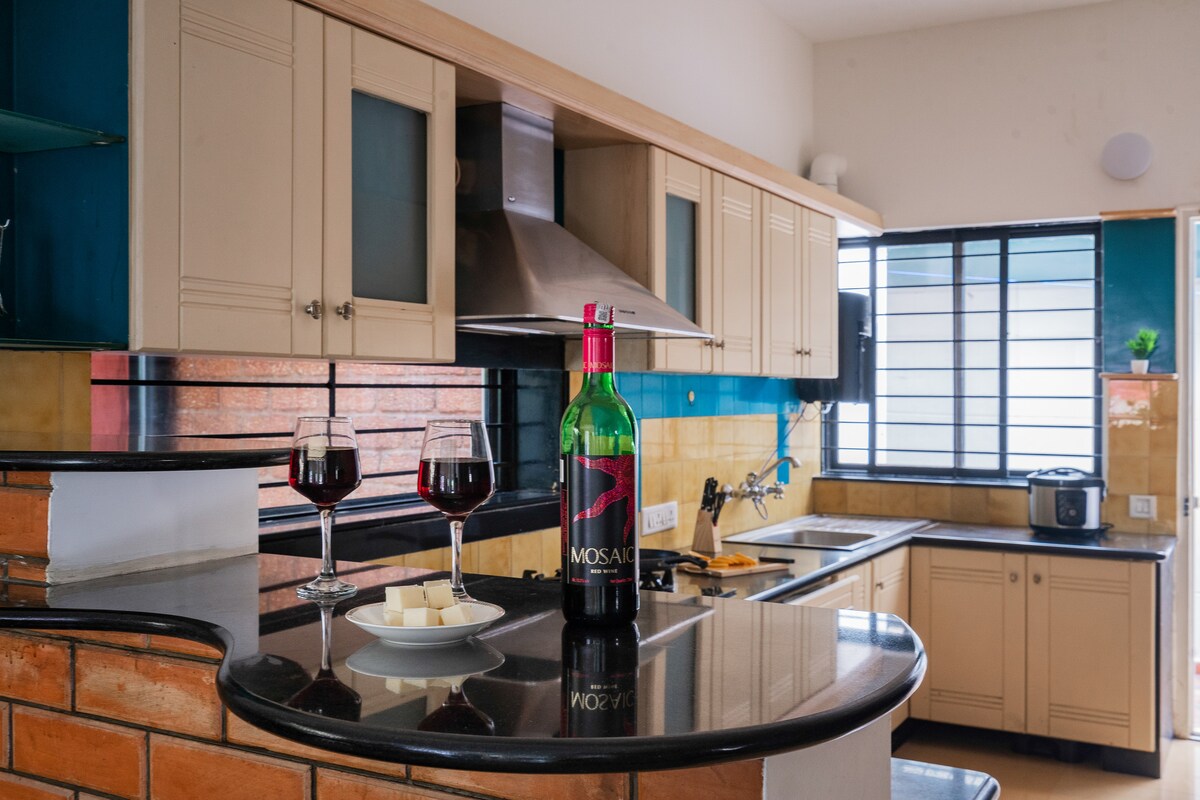 AURA'S NEST | Private 2BHK Villa | Young Crowd | Couples & Students ROOM FEATURE Bedroom:AC Clean bed & mirror Living:TV Streaming & cozy space Bath:Soak in Big-Bathtub Outdoor: Bonfire or BBQ Kitchen:Gas Stove Utensil & Fridge Dining:Pub Style ON DEMAND Help Oncall Food Swiggy/Zomato Cab Ola/Uber Spa UC App AMENITIE Fridge to chill beer Aircooler Cooling 35L Power inverter Outdoor Seating NEARBY Concert:Embassy Ridding school,Terraform Pubs & Café Lakes for Scenic view Vineyard for Winetour