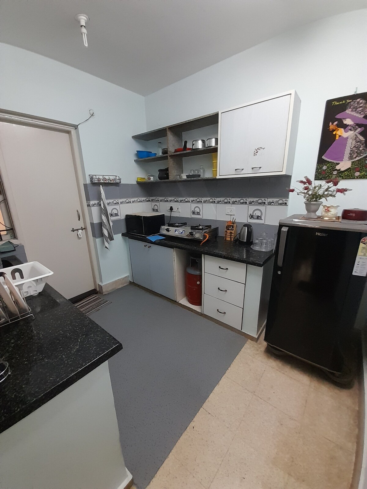 Penthouse z ogrodem otoczony spokojną, bujną zielenią, położony w jednym z najlepszych miejsc w Bangalore (BTM Layout). Łatwy dostęp do centrów handlowych, kin, supermarketów, szpitali i przystanków autobusowych. Udogodnienia – Woda przez całą dobę. – Przybory do gotowania – Szybkie Wi-Fi - Kuchenka gazowa. – Mały sprzęt do ćwiczeń. - Solar Geyser. - Mata do jogi - Mały ogród na tarasie. - Miejsce do pracy. Dostęp gości - Oddzielne wejście do przestrzeni. – Miejsce znajduje się na 4 piętrze (bez windy)