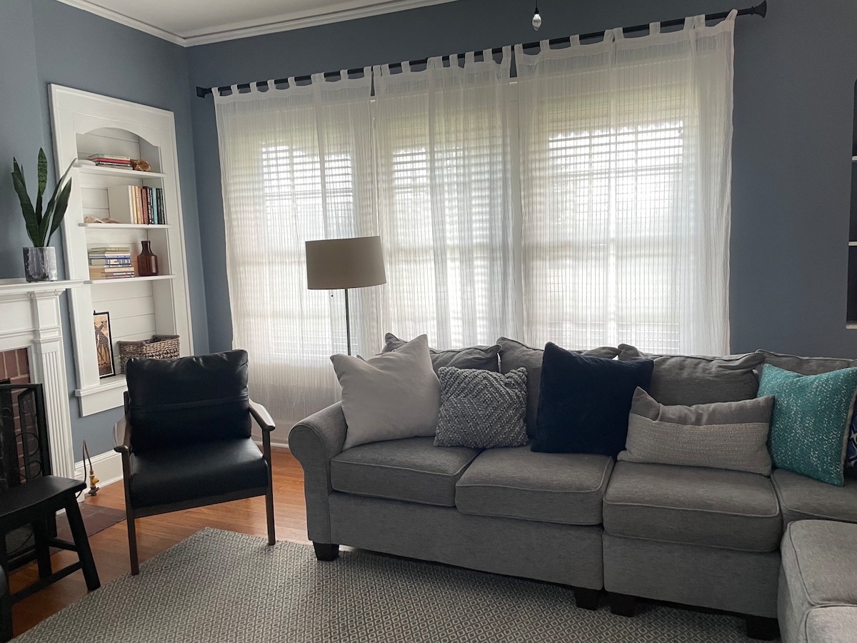 To wspaniała i luksusowa dwupiętrowa kamienica z: – 2 duże łóżka (king): 1 twarde, 1 pluszowe (każde we własnej sypialni) – 1 rozkładaną sofą i 1 materacem dmuchanym - 1 pełna łazienka i 1 łazienka z toaletą - 86-calowy telewizor 4K z telewizorem Roku do salonu – 55-calowy telewizor z Roku w każdej sypialni - Palenisko - Grill - 2 biurka - 4 czyste szlafroki - Świeża pościel - Wesołe i wygodne meble Znajduje się obok naszego drugiego (prawie identycznego) apartamentu: Bright Haven #640. Jeśli potrzebujesz miejsca do spania dla większej liczby osób, możesz wynająć oba.