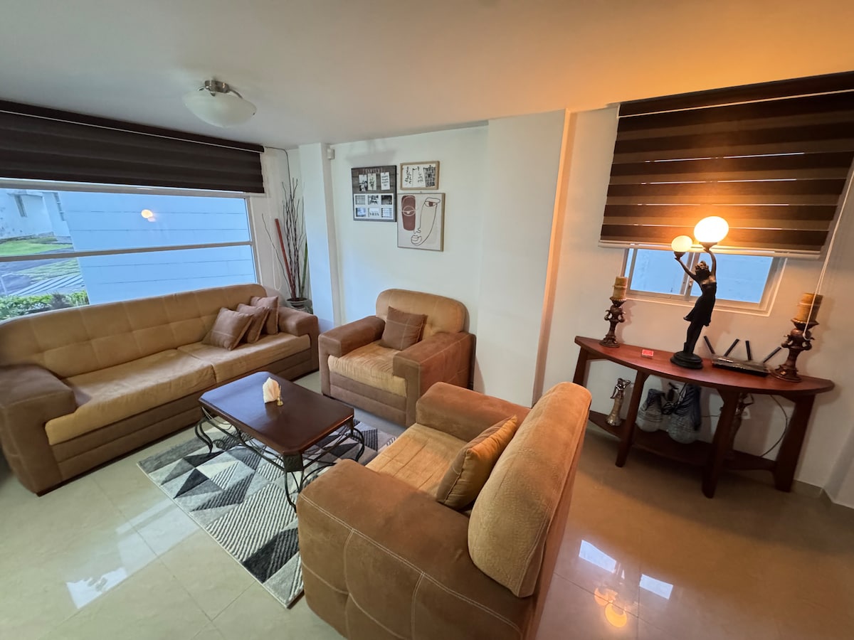 Vive experiencias inolvidables con tu familia y grupo de amigos en ésta espectacular casa rodeada de jardines en paz y seguridad, totalmente independiente amoblada y equipada. Tiene 3 dormitorios con baño privado + 1 dormitorio extra. Sala, comedor, cocina, baño social, chimenea, smartv, balcón con hamaca, garaje privado para 2 autos. Wi-fi, internet, agua caliente (24 horas) Área de césped con acceso para niños. Camas: 5 (1 King, 2 Queen, 1 Full, 1 Twin, 1 sofá-cama) Capacidad: 9 huéspedes.