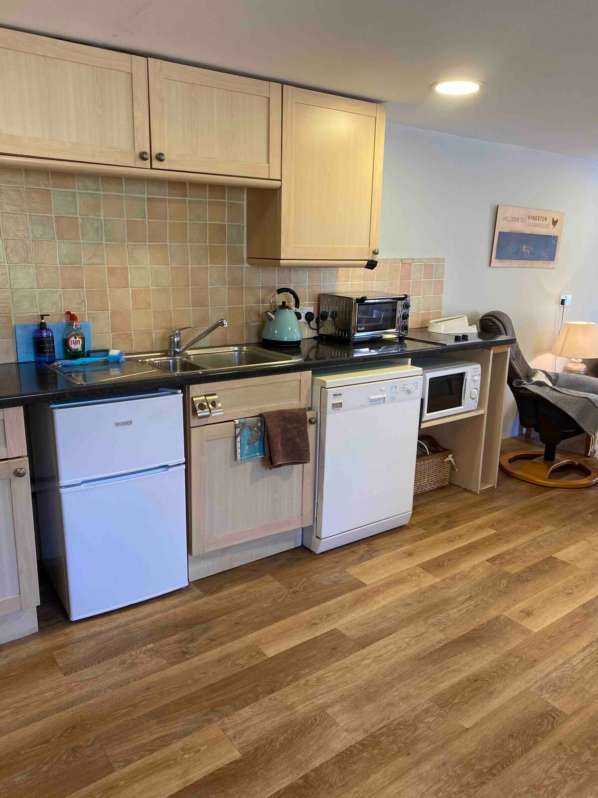 Langmans Bothy to samodzielna, przebudowana stodoła dzieląca podjazd z naszym domem. Nie jest ani połączona, ani widoczna z naszego domu. Posiada sypialnię, łazienkę z prysznicem i toaletę, salon z sofą, telewizor, internet Wi-Fi i małą kuchnię z aneksem kuchennym w szafce, w której znajduje się lodówka, dwupalnikowa płyta grzewcza i zlewozmywak. Jest oddzielny piekarnik kombi i mała lodówka/zamrażarka. Jest tu taras z widokiem na nasz ogród, ze stolikiem i dwoma krzesłami. Nie ma ładowarki do pojazdów elektrycznych