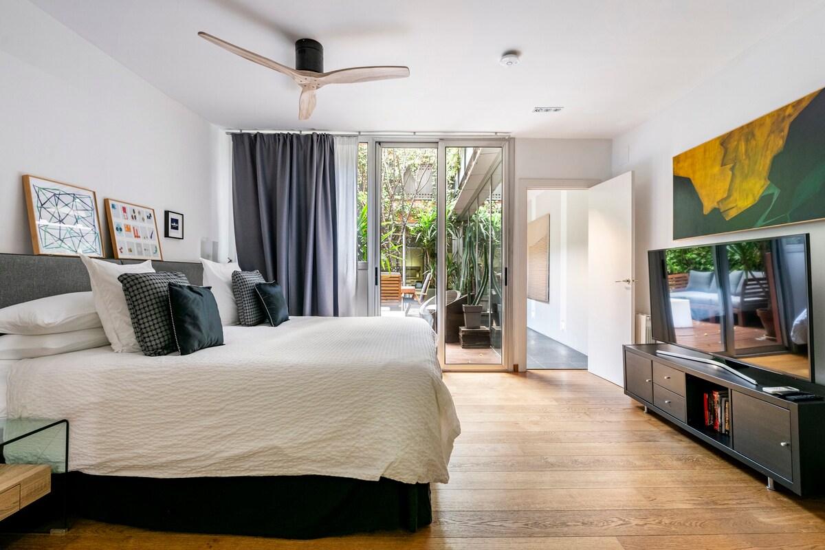 Apartment in a unique, listed Modernist building that follows the lines of the genius Antoni Gaudí's architectural legacy, a true Barcelona home, fully renovated for your comfort. Ciesz się prywatnym tarasem ogrodowym i luksusowymi detalami w samym sercu miasta. Zaledwie kilka kroków od Rambla Catalunya, Passeig de Gràcia i Avd Diagonal, z najlepszymi zabytkami, takimi jak La Pedrera i Casa Batllo w pobliżu. Doskonałe połączenia komunikacyjne: metro, autobus, taksówka, Uber i pociąg. Podatek turystyczny wliczony w cenę. Poznaj Barcelonę w dobrym stylu.