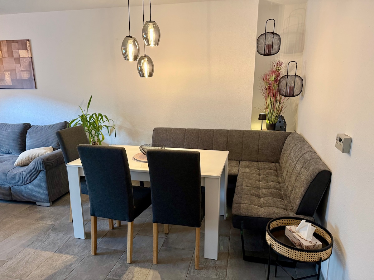 Przestronny dom w bliźniaku z domem mieszkalnym właściciela tuż obok. Łącznie około 80-90 m² powierzchni mieszkalnej. Dwie oddzielne sypialnie, każda z podwójnym łóżkiem i łóżeczkiem dziecięcym. Miejsce dla maksymalnie 5 osób dorosłych i 1 dziecka. Dziedziniec i ogród są zawsze dostępne. Dostępne są Wi-Fi i dwa telewizory LCD. Możliwości wycieczek w Harz bardzo blisko. Dom położony jest w spokojnej, ślepej uliczce. Może być również wykorzystywany przez monterów / na pobyty służbowe.
