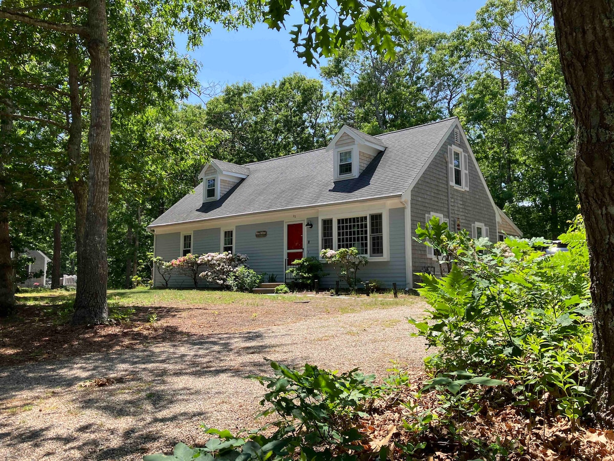 Odnowiony, przestronny i spokojny dom w Mid-Cape Droga prywatna, prywatna plaża/staw (5 min pieszo) Cicha centralna klimatyzacja 4 BR/3 full bth: > Parter: 2 sypialnie i 2 łazienki – dla 4 osób > Na górze: 2 sypialnie i 1 łazienka – dla 4 osób Podłogi z twardego drewna Duży, ekranowany ganek Duży salon: 2 skórzane fotele rozkładane i kanapa, kuchenka gazowa Jøtul, telewizor OLED 65” Wooded yard - gas fire table, grill Ping Pong – (niedokończona piwnica) Near 25-mile long Bike Trail, beaches, golf/mini-golf, tennis, boating Palenie wzbronione