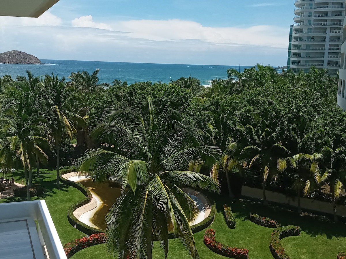 Urocze miejsce na pobyt przy plaży, gdzie można wygodnie odpocząć, zjeść i spać, gdy nie korzysta się z wspaniałej plaży i basenu oraz wszystkiego, co Ixtapa ma do zaoferowania. Apartament znajduje się na 6 piętrze i ma spektakularne okno od ściany do ściany w salonie, które otwiera się na fantastyczne widoki na góry, pole golfowe i wschód słońca. Przesuwne drzwi tarasowe prowadzą do wspaniałych widoków na ocean i góry z niesamowitymi zachodami słońca nad Oceanem Spokojnym.