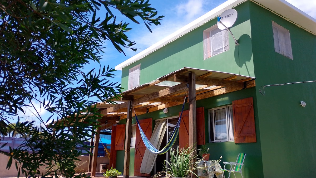 Punta del Diablo - ma dom na piętrze i dwa super wyposażone i umeblowane apartamenty na parterze. Z Wi-Fi, telewizorem, klimatyzacją na zimno, wentylatorem stojącym, wentylatorem stojącym, lodówką, ekspresem do lodów, kuchnią, kuchnią, kuchenką mikrofalową, kuchenką mikrofalową, tosterem, blenderem, pełnym naczyniami, grillem z elementami. Posiada również część wspólną, pergolę z krzesłami z własnym grillem i duży park. Prześcieradła i koce są zapewnione, a nie ręczniki.
