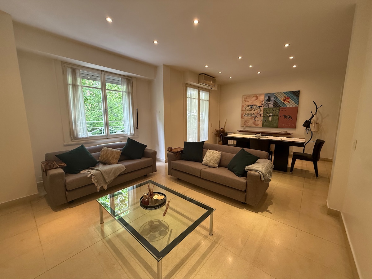 To tutaj! Nieskazitelne i jasne, 2 pokoje, 64 m² w jednej z najbardziej ekskluzywnych, bezpiecznych i pięknych dzielnic miasta: Barrancas de Belgrano. Elegancko umeblowane, klasyczne i nowoczesne. Będziesz mieć pralkę, lodówkę, piekarnik elektryczny, kuchenkę mikrofalową, czajnik elektryczny, toster, ekspres do kawy. W pobliżu znajdują się kawiarnie, place, bary, restauracje i ambasady. W pobliżu atrakcji turystycznych miasta. Nie ma ŻADNYCH dodatkowych kosztów do zapłacenia i możesz parkować za darmo na ulicy.