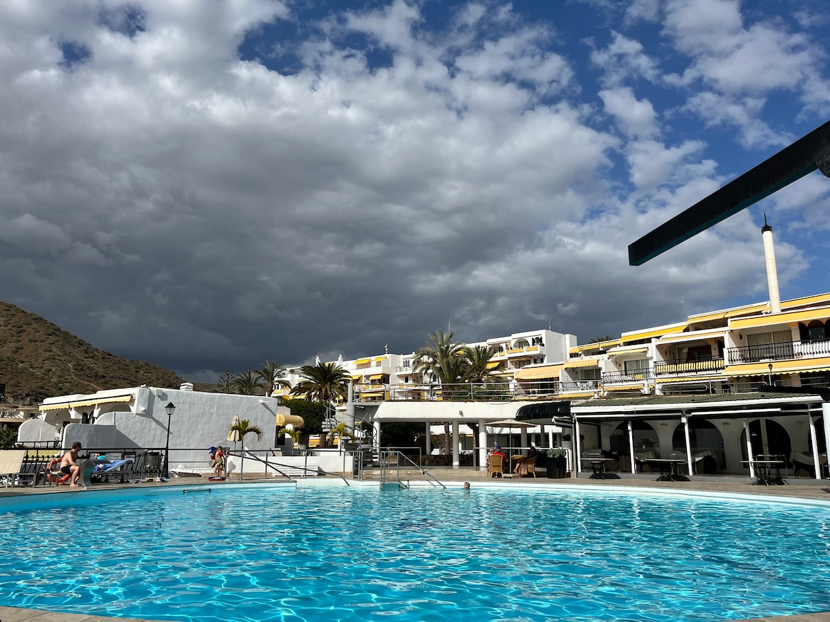 Ładny i przestronny apartament z 2 sypialniami, prywatnym tarasem na dachu ze słońcem od rana do wieczora. TV, Apple TV, światłowód/internet Wspaniałe widoki na ocean, Teneryfę, Teide, Balito i Portoryko. Słońce od rana, aż do morza na werandzie. 3 baseny w obiekcie z kartą dostępu. Kawiarnia, bar, mały lokalny supermarket, wypożyczalnia samochodów, boisko do tenisa/piłki ręcznej/koszykówki w obiekcie. W niewielkiej odległości od restauracji, barów, centrum handlowego, autobusu/taksówki i publicznej plaży Anfi Winda nad morze